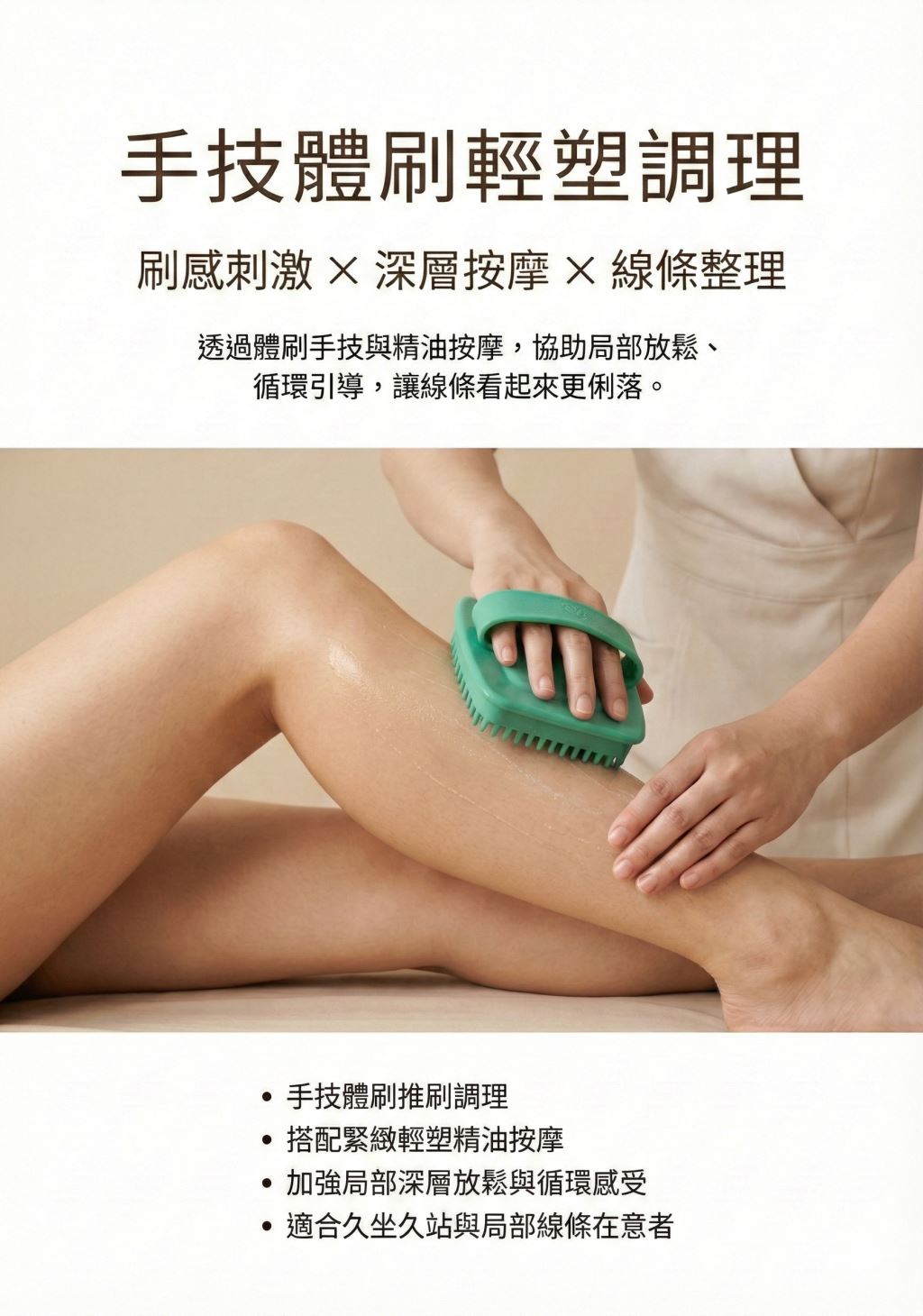以刷感刺激與深層按摩為核心的局部線條調理課程