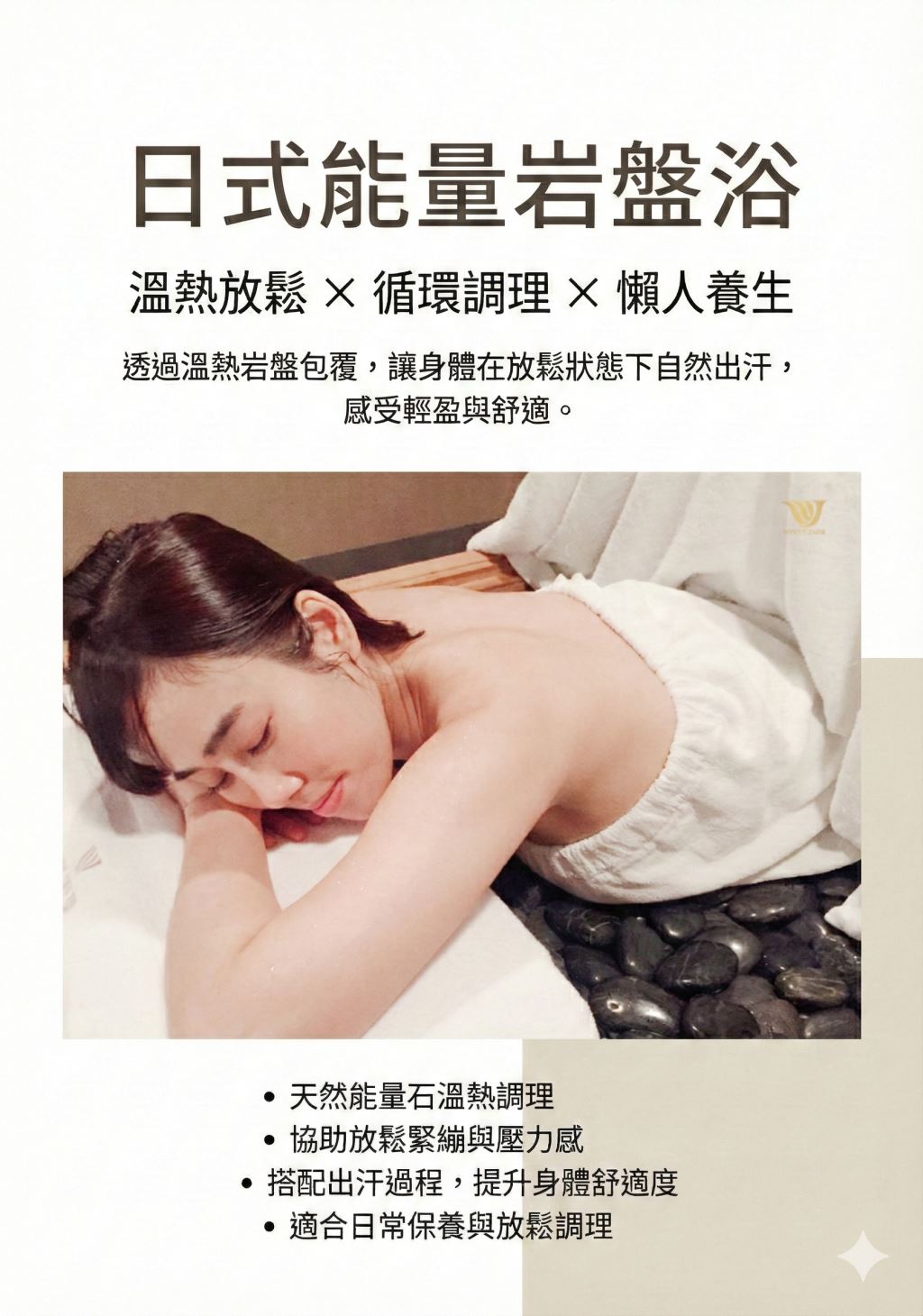 在忙碌的生活節奏中,長時間久坐、壓力累積與作息不規律,容易讓身體感到緊繃、沉重,循環狀態也隨之變慢。若缺乏適當放鬆,疲勞感往往反覆堆積。日式能量岩盤浴以穩定溫熱為基礎,透過天然能量石所釋放的熱能,讓身體在放鬆的狀態下自然出汗,幫助舒緩緊繃感,提升整體舒適度。課程過程輕鬆、不需高強度運動,適合想要放鬆身心、調整日常節奏的人。整體設計著重於「溫和、無負擔、好入門」,可作為日常保養、體雕或護膚課程前後的放鬆搭配,讓身體回到較輕盈、順暢的感受。